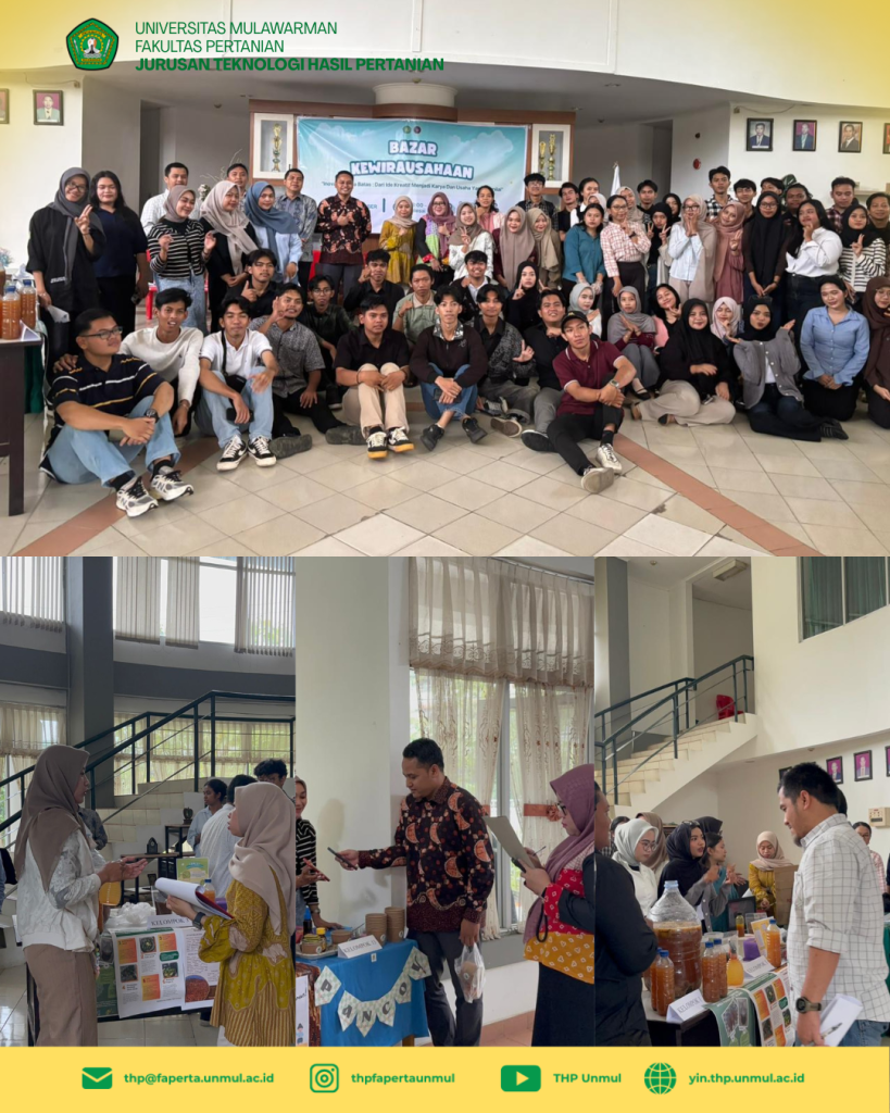 Samarinda, 24 Oktober 2025 – Jurusan Teknologi Hasil Pertanian, Fakultas Pertanian Universitas Mulawarman kembali menggelar Bazar Kewirausahaan dan Project Based 2025 dengan mengusung tema “Inovasi Tanpa Batas; dari Ide Kreatif menjadi Karya dan Usaha yang Bernilai.”
