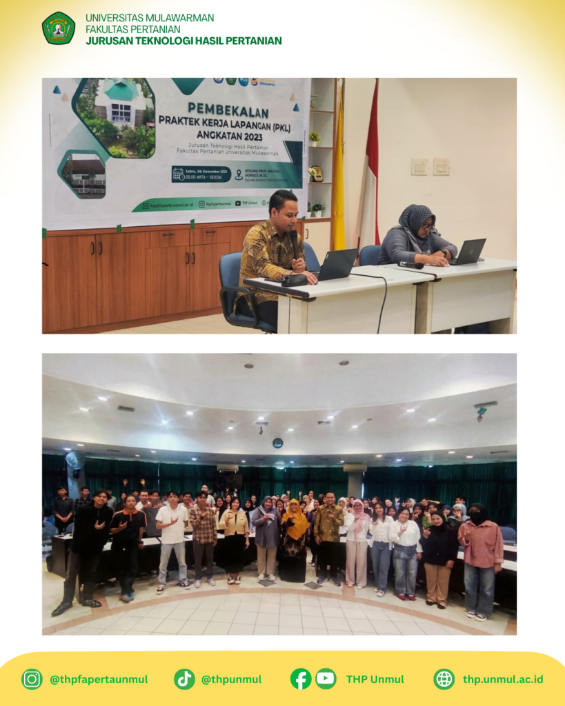 Samarinda – Jurusan Teknologi Hasil Pertanian Universitas Mulawarman kembali mengadakan kegiatan Pembekalan Praktek Kerja Lapangan (PKL) bagi mahasiswa yang akan menjalani pengalaman langsung di dunia industri, UMKM, maupun instansi terkait. Agenda ini menjadi langkah strategis untuk membekali mahasiswa dengan pengetahuan, etika, serta keterampilan komunikasi yang diperlukan agar siap menghadapi tantangan nyata di lapangan. Kegiatan ini diikuti oleh mahasiswa Jurusan Teknologi Hasil Pertanian yang akan melaksanakan PKL di berbagai sektor industri, UMKM, maupun instansi pemerintahan.Acara pembekalan dibuka secara resmi oleh Ibu Dr. Aswita Emmawati, M.Si selaku Ketua Jurusan Teknologi Hasil Pertanian, yang menegaskan bahwa PKL merupakan sarana pembelajaran praktis sekaligus wadah pengembangan diri. Beliau menekankan bahwa PKL tidak hanya sekadar kewajiban akademik, melainkan juga kesempatan berharga untuk memperluas jejaring, memahami budaya kerja, dan meningkatkan profesionalisme.